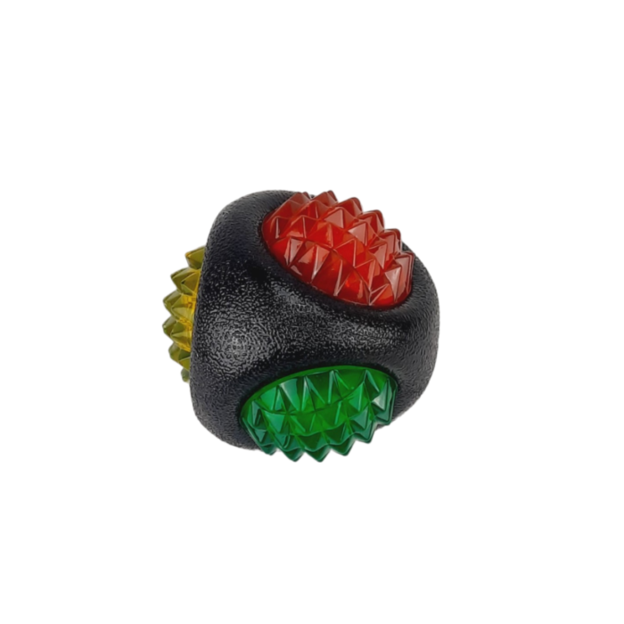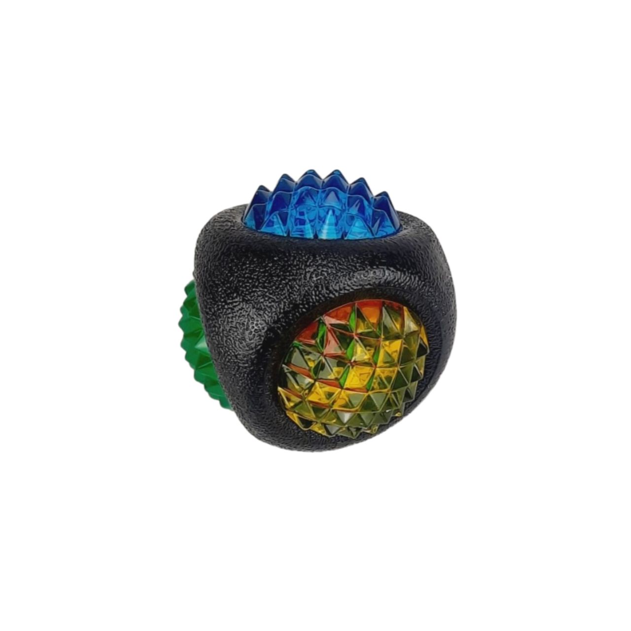 Веселая игрушка для собак с разноцветными вставками.Обладает пластичностью, ударо- и износоустойчивостью. 4 разноцветные вставки со всех сторон.