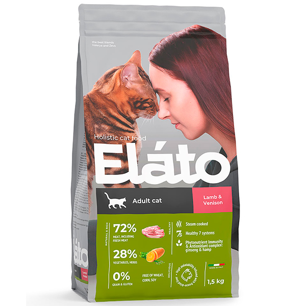 Корм Elato Holistic для взрослых кошек с ягненком и олениной: