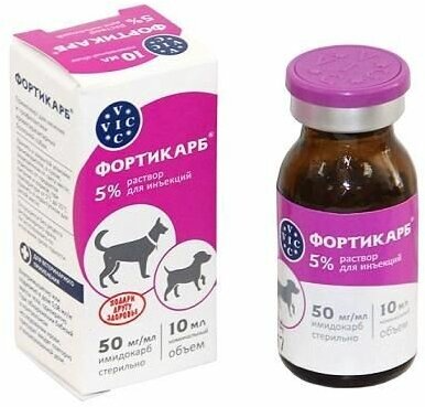 VIC Фортикарб 5% - предназначен для лечения острого, хронического и субклинического (при обнаружении бабезий в крови) бабезиоза, а также для его профилактики у собак.