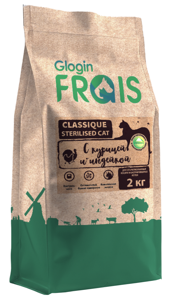Полнорационный сухой корм FRAIS STERILISED CAT для стерилизованных кошек и кастрированных котов всех пород с курицей и индейкой премиум класса.
