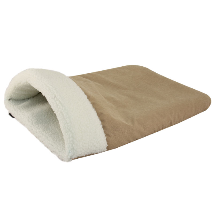 Мягкий бескаркасный домик-тоннель снаружи выполнен из светлой искусственной овчины и бежевого велюра. Внутри изделия - синтепоно-паролоновая основа. Размер изделия: 400*480*110мм. Цвета в ассортименте.
