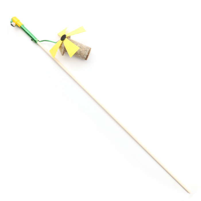 Яркая и функциональная удочка-дразнилка - это всегда актуальный аксессуар для усатых-полосатых. Такая удочка и развлекает питомца, и дрессирует одновременно, помогая кошке также держать мыщцы в тонусе, развивать сообразительность и даже умственные способности. Игрушка имеет деревянную основу и декорирована оригинальными элементами. Размер: 510мм.