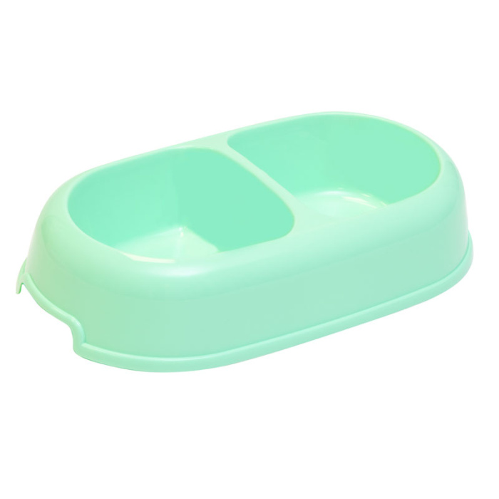 Удобная двойная миска "Мармелад" для собак и кошек выполнена из качественного полипропилена. Изящная форма, актуальная цветовая гамма и качественный материал - главные достоинства. Такая миска идеально подойдет как для воды, так и для корма разной консистенции. Она комфортна для питомца и легко моется под струей проточной воды с использованием бытовых моющих средств. Объем: 2*0,25л. Цвет: фисташковый. Размер: 245*135*50мм