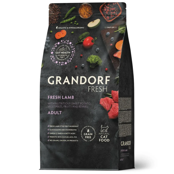 Свежее гипоаллергенное и питательное мясо ягненка благотворно влияет на здоровье кошки. Благодаря гипоаллергенным ингредиентам, беззерновому составу, живым пробиотикам, отсутствию глютена, корм имеет отличную усвояемость, высокую пищевую ценность и помогает оставаться вашему питомцу здоровым и жизнерадостным на протяжении долгих лет жизни.