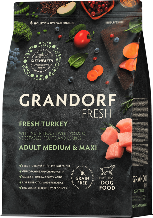 Свежее гипоаллергенное и питательное мясо индейки благотворно влияет на пищеварительную систему собаки. Благодаря монопротеиновой формуле, гипоаллергенным ингредиентам, беззерновому составу, живым пробиотикам, отсутствию глютена, корм имеет отличную усвояемость, высокую пищевую ценность и помогает оставаться вашему питомцу здоровым и жизнерадостным на протяжении долгих лет жизни.