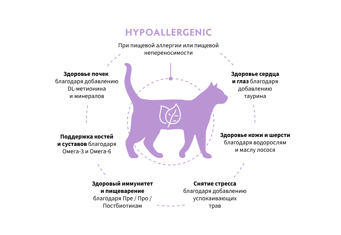 Полнорационный диетический корм для кошек, применяемый при пищевой аллергии или пищевой непереносимости.