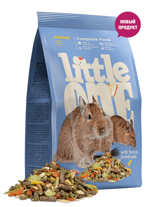Полноценный корм с добавлением витаминов и минеральных веществ, сбалансированный в соответствии с пищевыми потребностями дегу. Рацион отличается высоким содержанием клетчатки, необходимой для правильного пищеварения дегу.