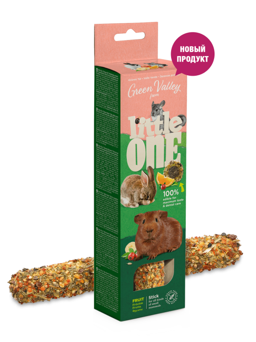 Полностью съедобная палочка с фруктами имеет богатый состав и хрустящую текстуру, которую очень любят декоративные животные.