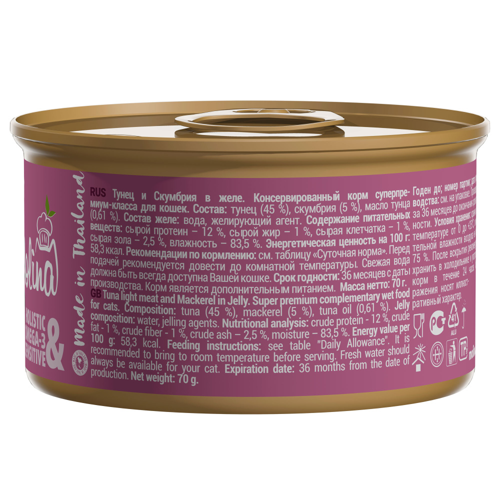 тунец (45 %), скумбрия (5 %), масло тунца (0,61 %).