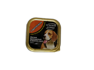 Натуральная формула" - премиальные корма для собак. Корма изготовлены из натуральных высококачественных компонентов. К разработке рецептур кормов привлекались специалисты в области питания животных. Перед запуском в серию корма прошли тестирование в ряде питомников (были получены положительные заключения). В кормах принципиально не применяется соя, искусственные красители, а также такие малоценные источники белка как мясокостная и перьевая мука, кишки, продукты гидролиза животных белков (дигест). Производство влажных кормов ведется по тем же нормам и санитарно-гигиеническим правилам, что и консервы для людей. Все мясное сырье проходит государственный ветеринарный контроль, а готовая продукция подвергается испытаниям на микробиологическую безопасность. Содержание мясных продуктов в корме - до 80% от объема.