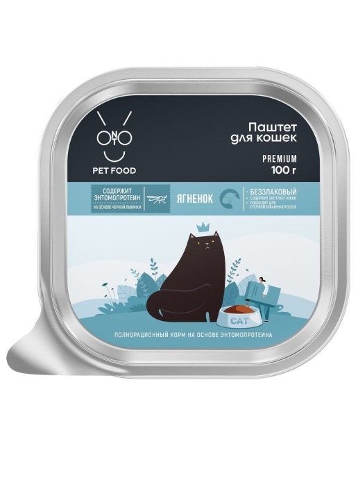 Мясо и субпродукты, куриный бульон, концентрат черной львинки (Hermetia illucens), рыба, пищевая клетчатка, пивные дрожжи, витамины и минералы, экстракт Юкки.