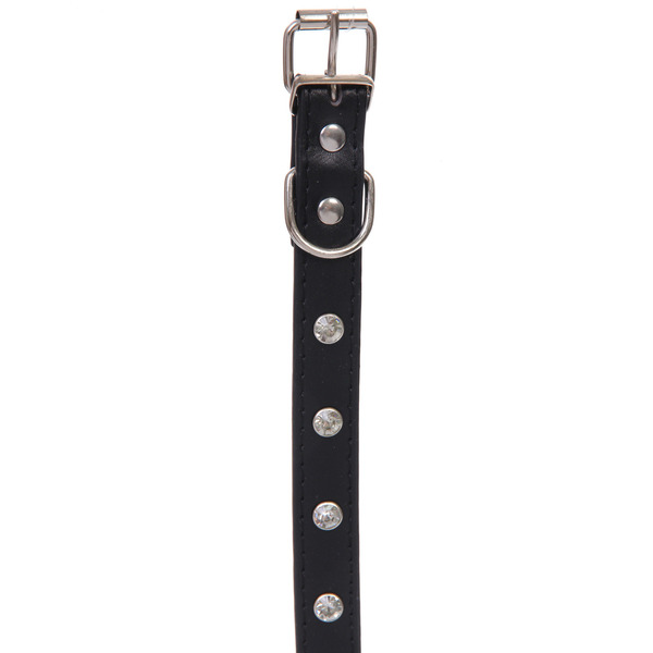 Стильный, модный ошейник со стразами из искусственной кожи и с прочным металлическим креплением для поводка для кошек и собак. Ошейник сделан с учётом анатомических особенностей разных пород, ошейник будет служить долго и не доставит неудобства питомцу и его владельцу. Такой ошейник сделает вашего питомца более привлекательным на прогулке и дома.