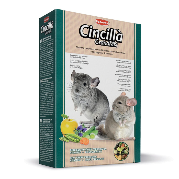 Padovan GRANDMIX CAVIE & CINCILLA - комплексный корм для морских свинок, шиншилл и дегу. Высококачественный полноценный комплексный корм для морских свинок, шиншилл и дегу. Обогащен фруктами и овощами, минералами , витаминами, особенно витамином С,который дополнительно необходим морской свинке из-за утраченной способности его синтезировать.