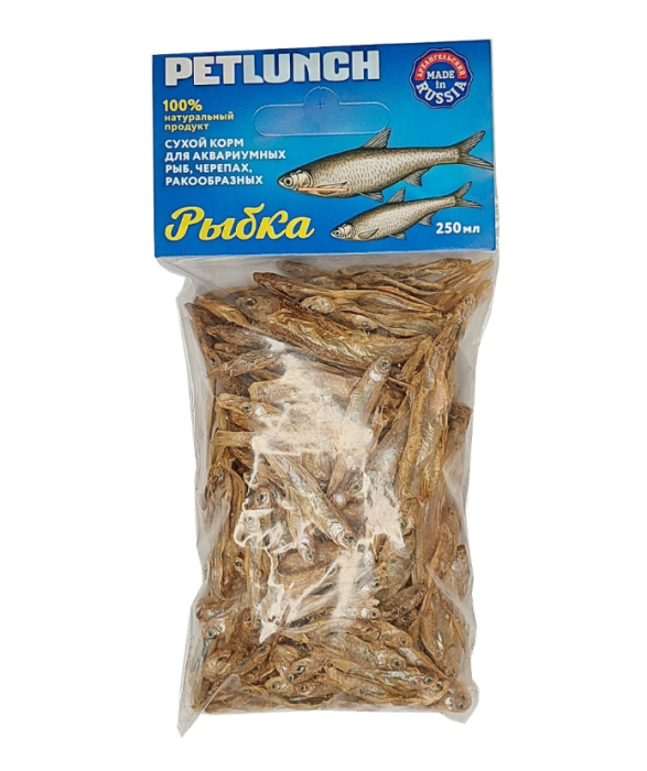 Petlunch Лакомство "Сушеные рыбки" для рептилий, земноводных и рыб, 250 мл. Питательное лакомство для рептилий (особенно для водяных черепах), содержит природный источник протеина, каротина и микроэлементов. В состав пищи рептилий должно входить много кальция и фосфора, которые необходимы для их нормального роста и развития панциря и костей. Хорошим источником этих минеральных веществ являются рыбки с костями. Рыбки можно давать как целиком, так и разламывая. Это лакомство придется по вкусу и другим обитателям аквариумов и акватеррариумов.