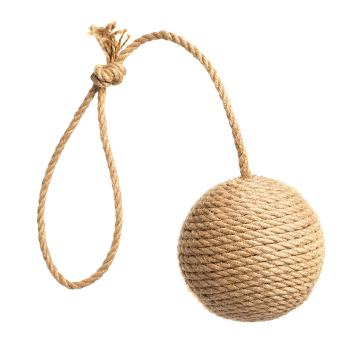 Динамическая когтеточка "Клубок с ручкой" позволяет точить когти и играть одновременно. Благодаря принципу неваляшки, клубок всегда возвращается в исходное положение, а безопасный джутовый канат помогает бережно точить когти. Канатная ручка обеспечивает удобство игры.