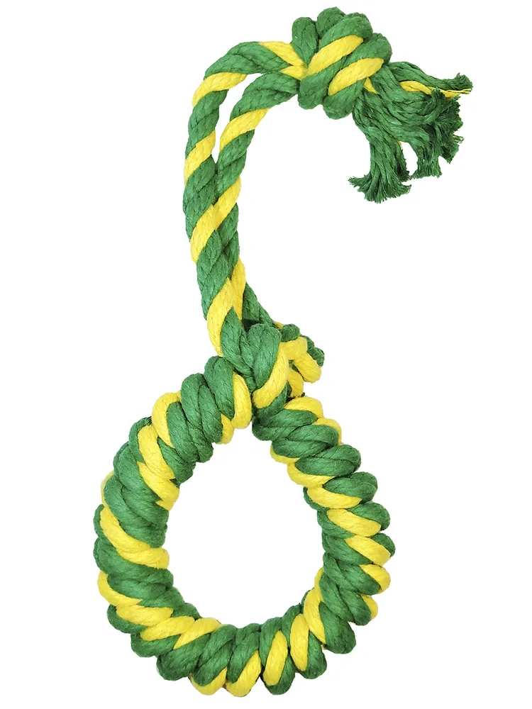 Канатные игрушки не создают шума, который может нервировать собаку, так как некоторые собаки бояться громких и резких звуков. Регулярное "жевание" и "трепка" игрушки снимает нервное напряжение, уменьшая количество кортизола в организме -"гормона стресса". Хлопковый канат помогает очистить ротовую полость от остатков пищи и зубного налета. Размер L=410, d=12, D=130· Безопасно для зубов собаки· Экологический чистый хлопок. Производство - Россия. Сделано вручную для вашего питомца!