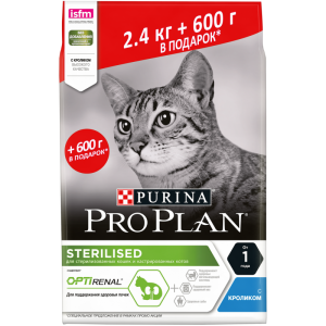 Сухой корм Pro Plan® для взрослых стерилизованных кошек и кастрированных котов старше 1 года, с кроликом.