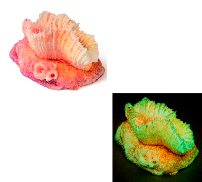 Светящиеся кораллы идеально расположены в аквариуме рядом с источниками света. Они быстро подзаряжаются и светят в течение 7-8 часов. Как известно, вода хорошо проводит свет, поэтому в ней свечение становится более интенсивным. Люминофоры аккумулируют энергию от света и отдают её в виде свечения в темное время суток.