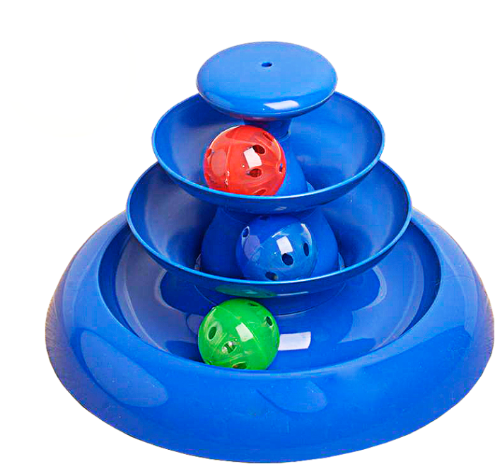 Игрушки для кошек Башня - устойчивая конструкция диаметром нижнего яруса 25 см, высотой 13 см идеально подходит для развлечения животных. В комплект входит три звенящих шарика на каждый уровень пирамиды.