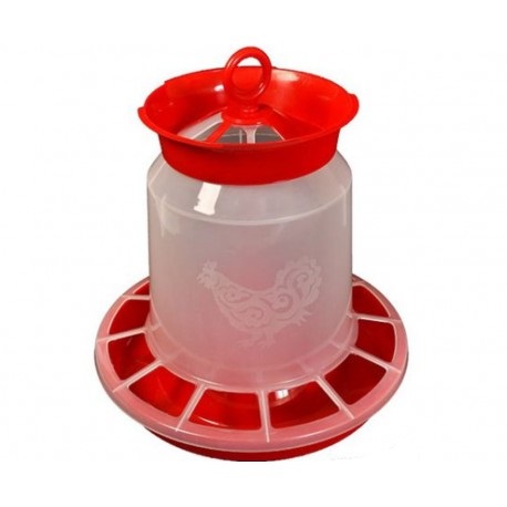 Кормушка изготовлена из пластика. Простая конструкция. Есть возможность подвешивать. Удобна в обслуживании и чистке. Ее объем рассчитан на корм весом до 10кг.