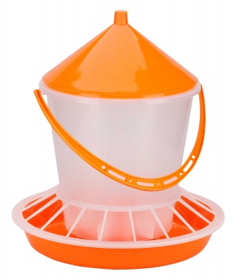 Изделие рассчитано на кормление птиц сухим кормом. Кормушку можно использовать для разных видов домашних птиц: кур, уток или бройлерных цыплят. Она выполнена из прочного высококачественного пищевого пластика. Благодаря этому кормушка не имеет токсичных запахов. Не имеет острых и режущих краев. У данного изделия есть крышка, которая защищает корм от грязи и влаги. На лоток надет разделительный ободок, он не дает птице залезать внутрь и раскидывать корм. У бункера есть удобная ручка для переноса и подвешивания.