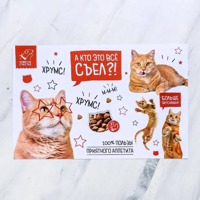 Пластиковый коврик под кошачью миску — это незаменимый атрибут для комфорта питомца и хозяина. Он спасёт пол в доме от загрязнений и предотвратит скольжение миски по полу. Размеры коврика: 43х28 см, подойдут для питомцев всех пород и возрастов. Внимание! У коврика нет дополнительного противоскользящего слоя.