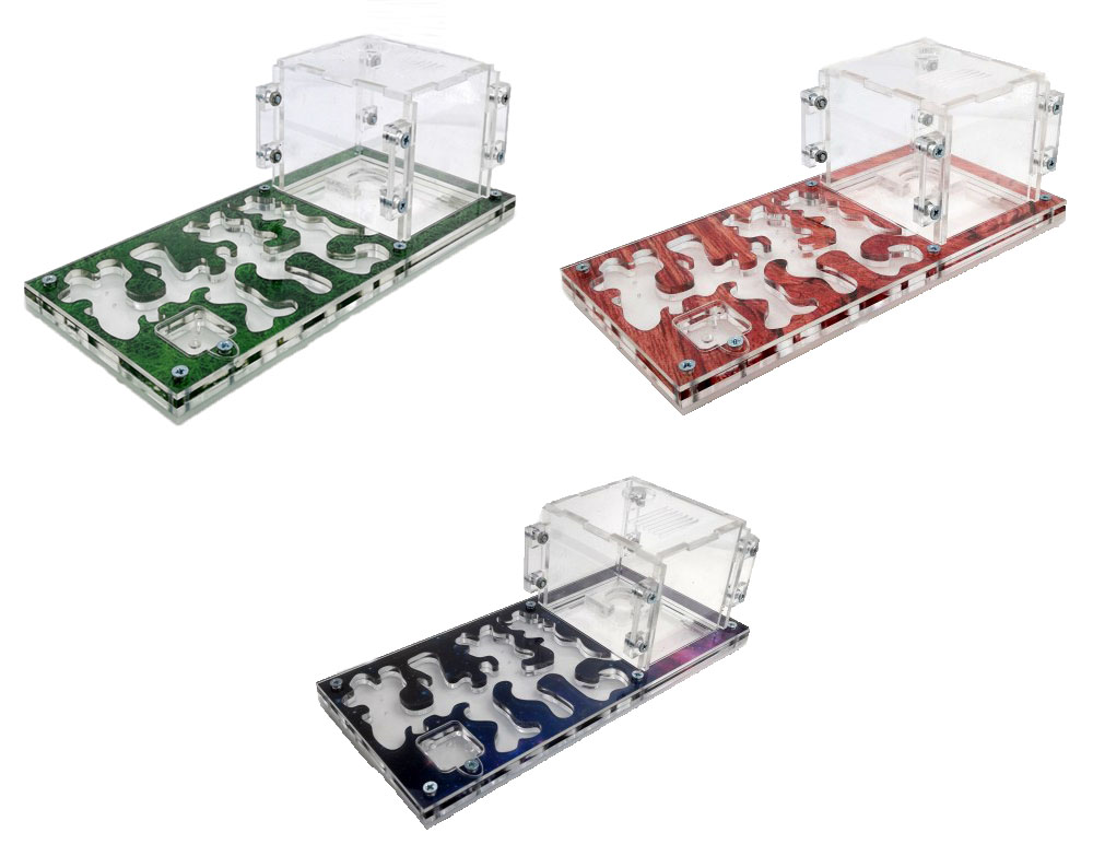 Горизонтальный акриловый формикарий с встроенной ареной. На компактных размерах дизайнерами продумано и размещено всё необходимое для комфортного проживания насекомых и легкого ухода за ними. Кроме отсека для увлажнения предусмотрена поилка при помощи которой Вы сможете обеспечить влагой Ваших питомцев на длительный срок. А перфорация на крышке арены обеспечит постоянную циркуляцию воздуха в формикарии. Предусмотрено отверстие для возможности подключения других жилых блоков.