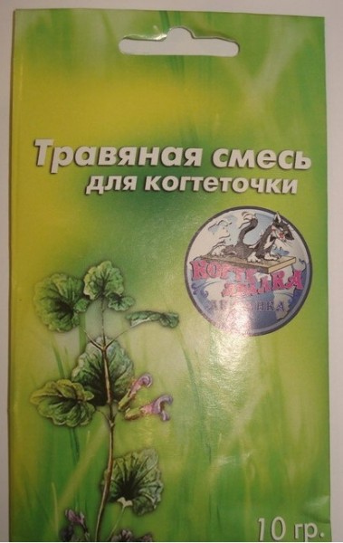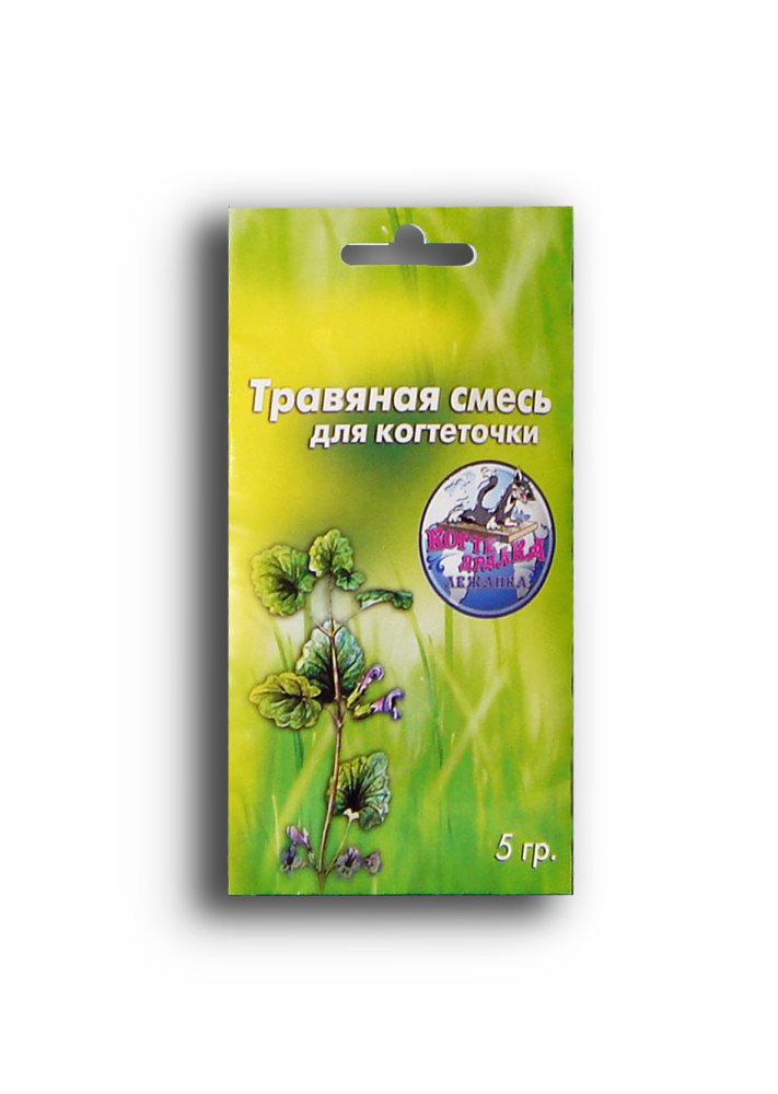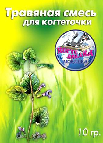 Травяная смесь для когтеточки необходима для приучения кошки к когтеточки. В состав смеси входит валерьяна, которая привлекает внимание животного.