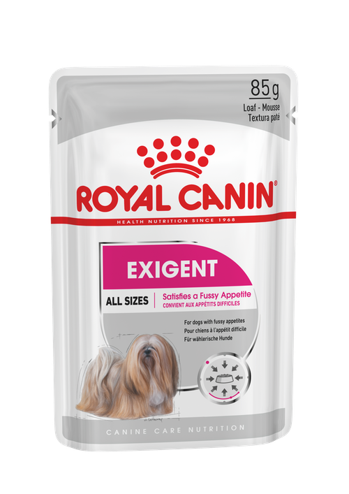 Влажный корм ROYAL CANIN® Exigent паштет предназначенный для собак пород любых размеров, содержит все питательные вещества, необходимые для поддержания здоровья. Обеспечьте свою собаку оптимальным рационом с помощью этого аппетитного продукта, который стимулирует аппетит даже у самых разборчивых животных.