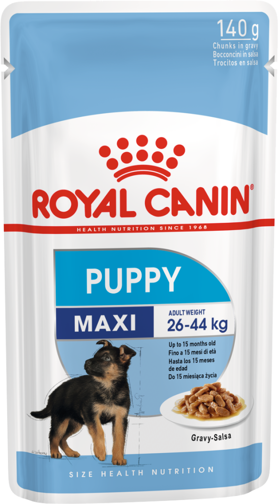Полнорационный влажный корм для щенков собак крупных размеров (вес взрослой собаки от 25 до 45 кг) c 2 до 15 месяцев.