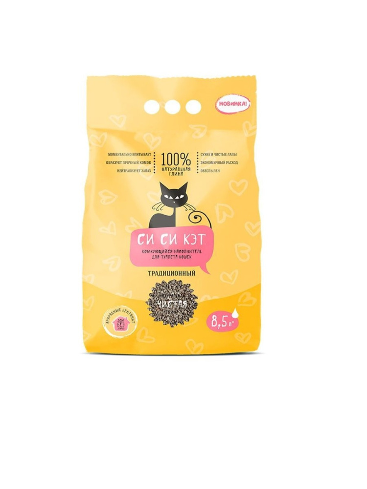 Наполнитель для кошачьего туалета "Си Си Кэт", Традиционный, бентонит, 8,5 л — это идеальный выбор для лотка кошки. Комкующийся наполнитель имеет натуральный и экологически чистый состав на основе глины. Гранулы бентонитовой глины отлично поглощают жидкость и образуют крепкие комки, эффективно нейтрализуя неприятные запахи.