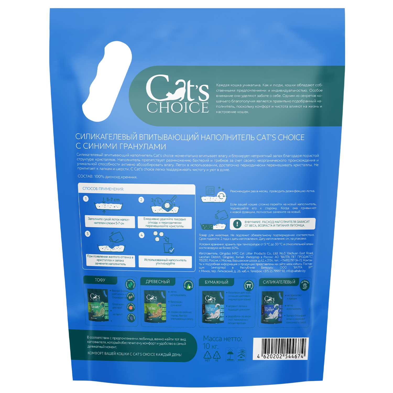 Силикагелевый впитывающий наполнитель Cat’s choice моментально впитывает влагу и блокирует неприятный запах благодаря пористой структуре кристаллов 1-4 мм.