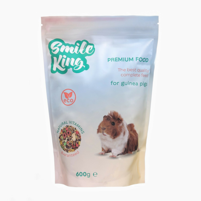 Полнорационный корм Smile King Premium 600г для морских свинок изготовлен в Беларуси из экологически чистого, отборного сырья. Корм линейки Premium для морской свинки отличается обогащенным составом и большим количеством разных волокон, а также является беззерновым полнорационным кормом. У морских свинок достаточно капризная пищеварительная система, поэтому не рекомендуется включать в их рацион такие продукты как: сахар, костная и рыбная мука, и бобы крупного помола.