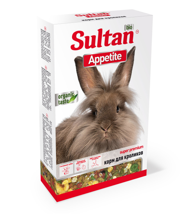 Вкусные ингредиенты Sultan Appetite такие как , кукуруза, овес, пшеница и горох, фрукты и овощи, луговые травы, а также витамины, обеспечивают вкусную повседневную диету, которая помогает повысить жизнеспособность вашего питомца.