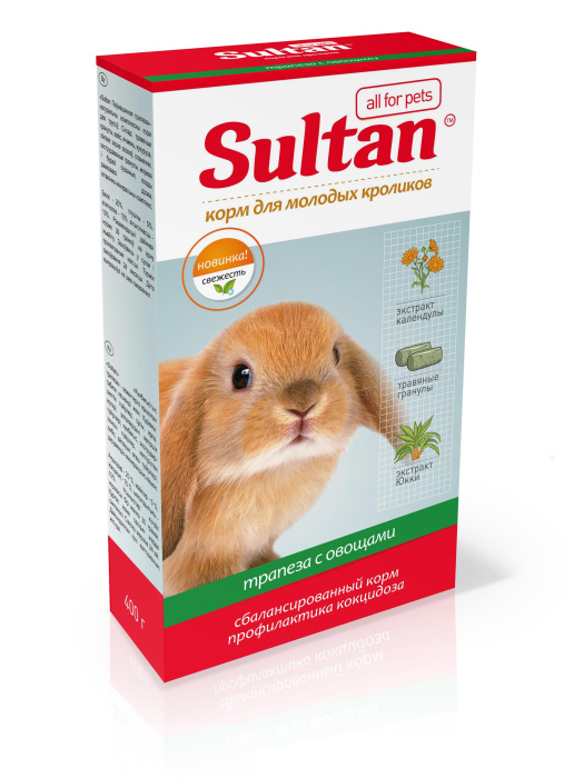 «Sultan» для молодых кроликов «Трапеза с овощами» — Это натуральный сбалансированный корм, изготовленный в соответствии с пищевыми потребностями молодых крольчат , живущих в домашних условиях.