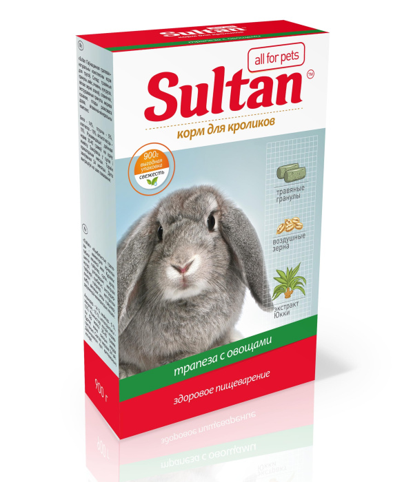 Большинство счастливых обладателей кроликов хорошо знают, что основа питания кролика – сено. Однако, в сене содержится недостаточное количество полезных веществ. Поэтому если вы заботитесь о полноценном и разнообразном питании своего кролика, корм «Султан» «Трапеза с овощами» для кроликов поможет Вам в этом. Это сбалансированный корм, учитывающий потребности кроликов в здоровом и оптимальном питании. Корм даст вашему кролику необходимые для здоровья полезные вщества, микроэлементы и минералы.