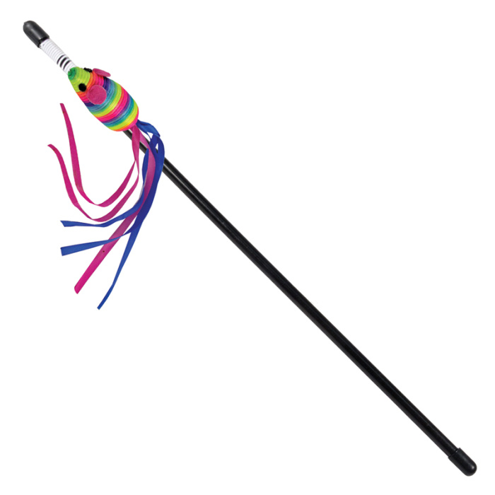 Благодаря яркой мышке с цветными лентами на конце такая удочка-дразнилка способна надолго завладеть вниманием домашнего охотника. Игры с удочкой-дразнилкой способствуют поддержанию кошки в хорошей физической форме и обеспечивают питомца интересным и разнообразным досугом. Ручка удочки изготовлена из прочного пластика и прослужит максимально долго. Длина ручки - 500мм, размер игрушки - 70мм.