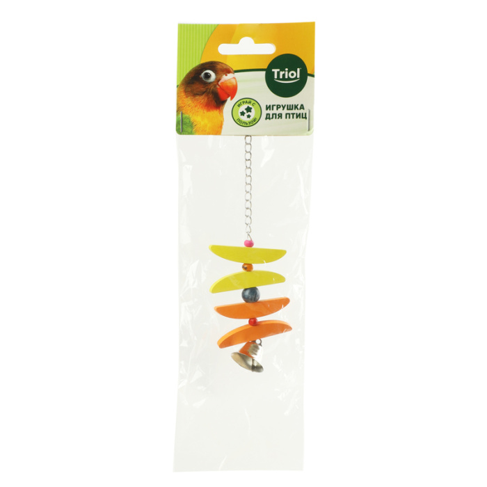 Игрушка для птиц в виде ярких бабочек из дерева и колокольчика. Цвет: в ассортименте. Размер: 250*50мм.