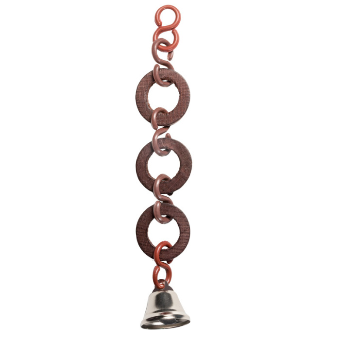 Игрушка для птиц - подвеска с деревянными кольцами и колокольчиком. Цвет: темное дерево, светлое дерево, желтое дерево. Размер: 155*23мм.