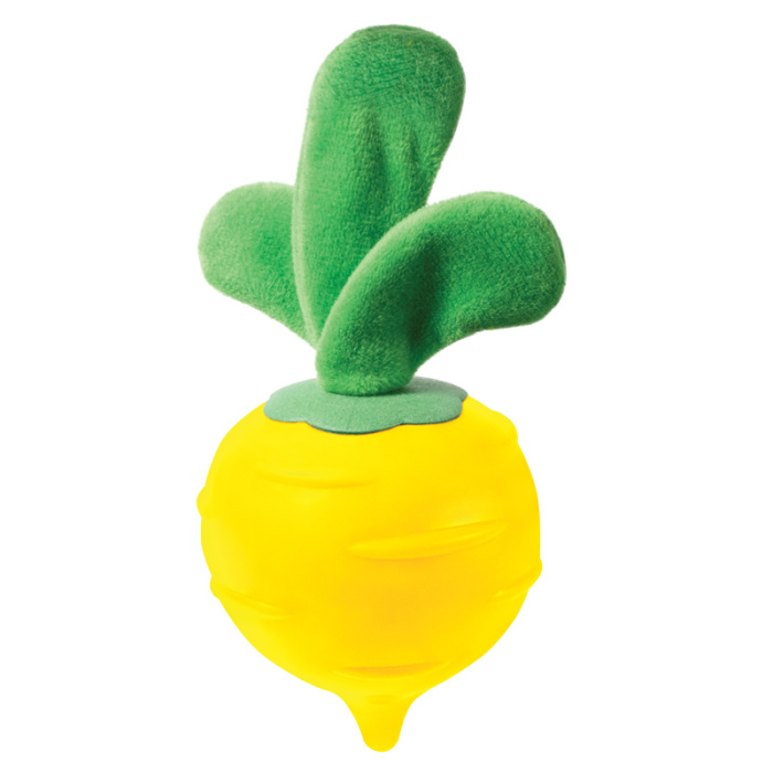 Фактурная игрушка для собак в форме репки из термопластичной резины с внутренним резиновым каркасом для повышенной прочности. К внутренней части игрушки крепится веточка из полиэстера. Листик оснащен шуршащим материалом, а игрушка - пищалкой. Игрушка устойчива к укусам собак крупных и средних пород с массивными челюстями. Термопластичная резина сохраняет упругость и эластичность даже при низких температурах и отличается длительным эксплуатационным периодом. Идеально подойдет для аппортировки и игры в воде. Материал мало подвержен химическому или термическому воздействию, не токсичен, без запаха, легко моется и не требует особого ухода. Цвет: "репка" - желтый, "листик" - зеленый. Размер: 155*74*74мм.