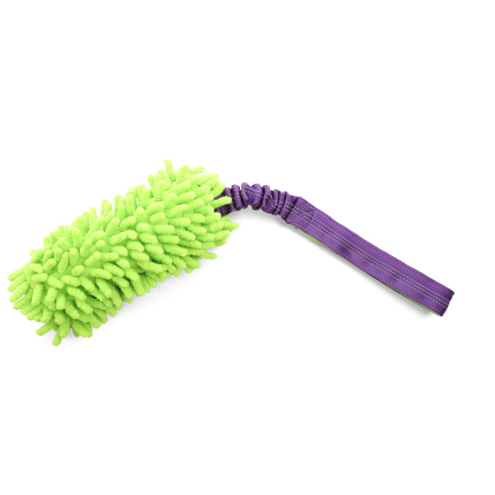 Игрушка-ухватка для собак отлично подойдет для дрессировки и совместных игр с питомцем. Ручка с мягким материалом внутри будет удобна для хозяина, а амортизирующая часть обеспечит комфорт и безопасность собаки во время перетяжки. Основная часть игрушки изготовлена из микрофибры - материала, который обожают трепать собаки, и оснащена пищалкой для дополнительного привлечения внимания. Цвет изделия: зелёный с фиолетовым. Размер изделия: 180*65*40мм (длина с ручкой - 450мм).