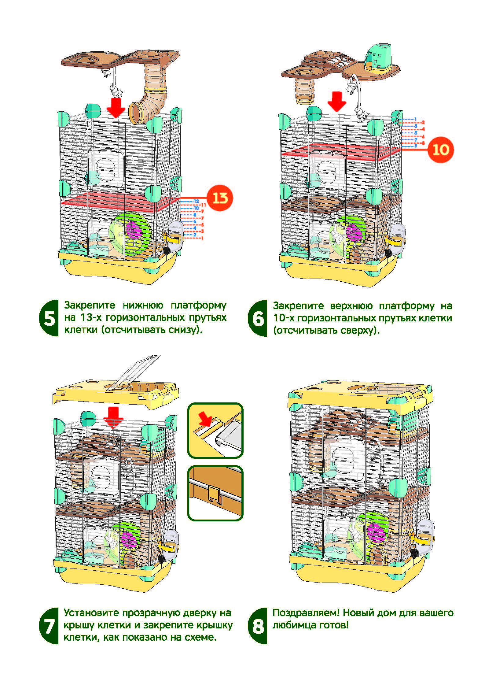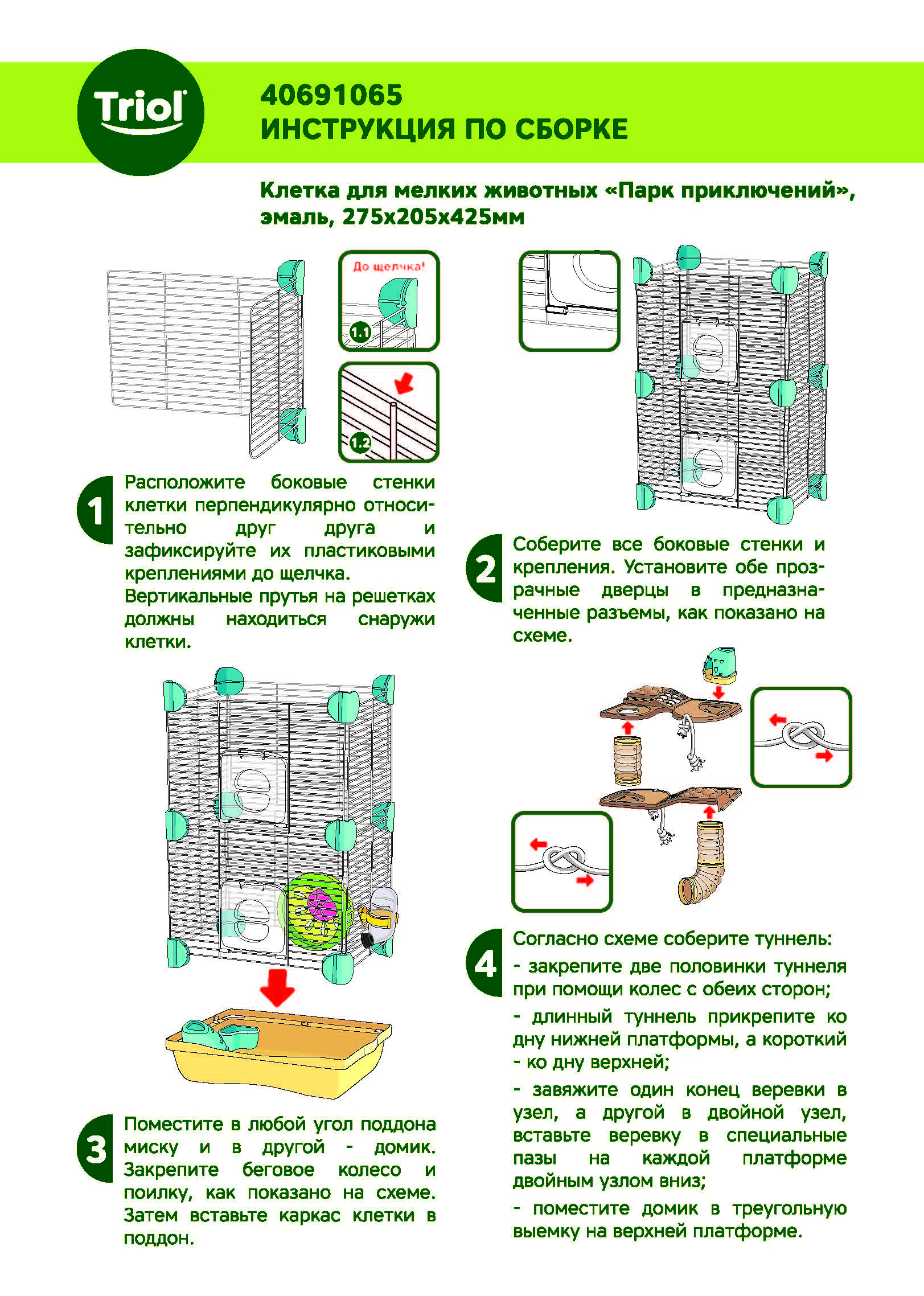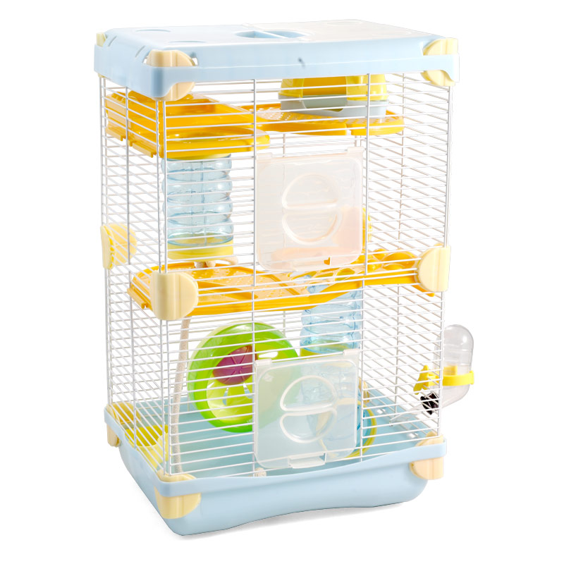 Яркая клетка прямоугольной формы с горизонтальными прутьями имеет два этажа и внутренние тоннели-переходы. Данная клетка - целый развлекательный комплекс для грызуна, который занимает немного места и отлично подходит для мелких домашних животных вроде крыс, мышей и хомяков. В комплектацию изделия также входят: пластиковая миска, поилка с носиком, беговое колесо и уютный домик. Кроме того, клетка оборудована специальным пластиковым наружным поддоном, облегчающим процесс уборки. Размер изделия: 275х205х425мм; диаметр колеса: 115мм.