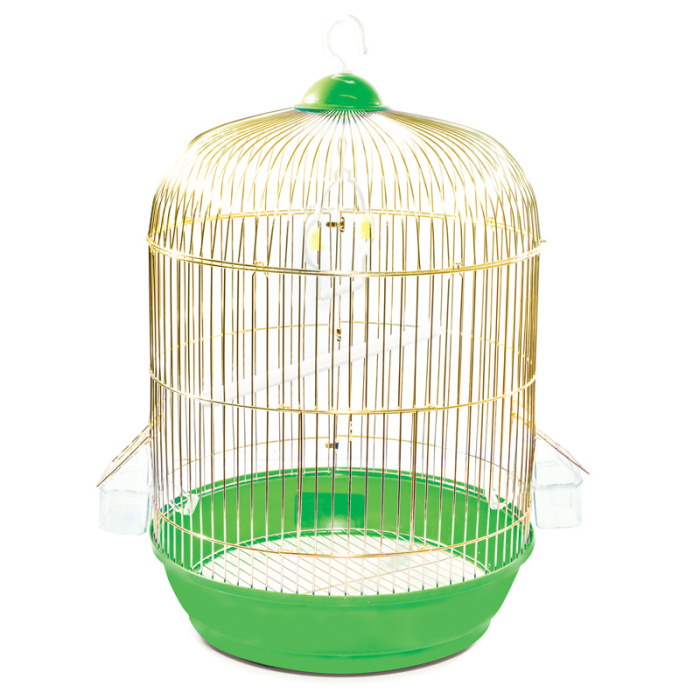 Круглая эмалированная клетка для птиц - универсальный аксессуар для владельцев пернатых питомцев небольших размеров. Прочная и удобная, такая клетка занимает совсем немного места и отвечает всем потребностям пернатых. В комплектацию изделия входят 2 корму