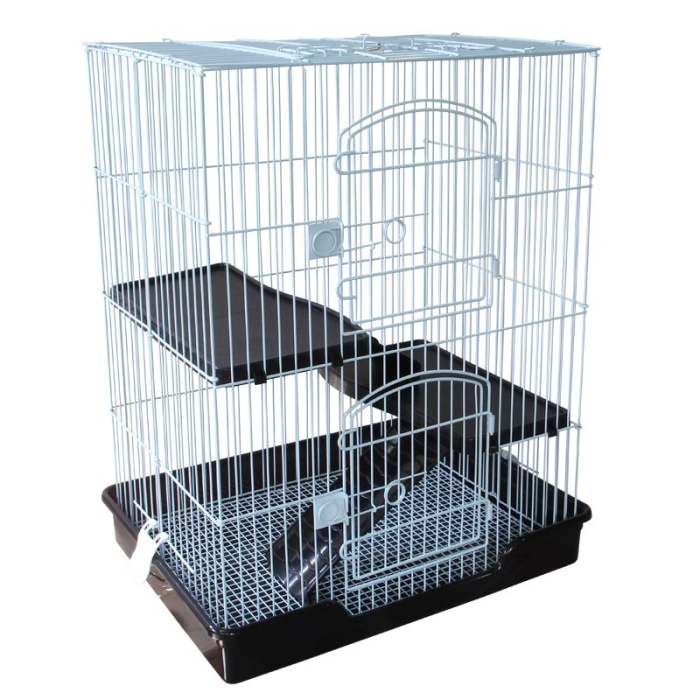 Клетка для животных эмалированная. Легко собирается и разбирается. Поддон находится под нижней решеткой. Нижняя решетка не съемная. Поддон пластиковый легко выдвигается. Идеально подходит для временного содержания мелких животных, выставки, перевозки. Доступ в клетку через дверь, которая закрывается на надежный засов. Эмалированная клетка устойчива к влияниям внешней среды. Цвет решетки: черный. Цвет поддона: черный. Расстояние между прутьями: 30,8мм. Размер: 600*430*500мм