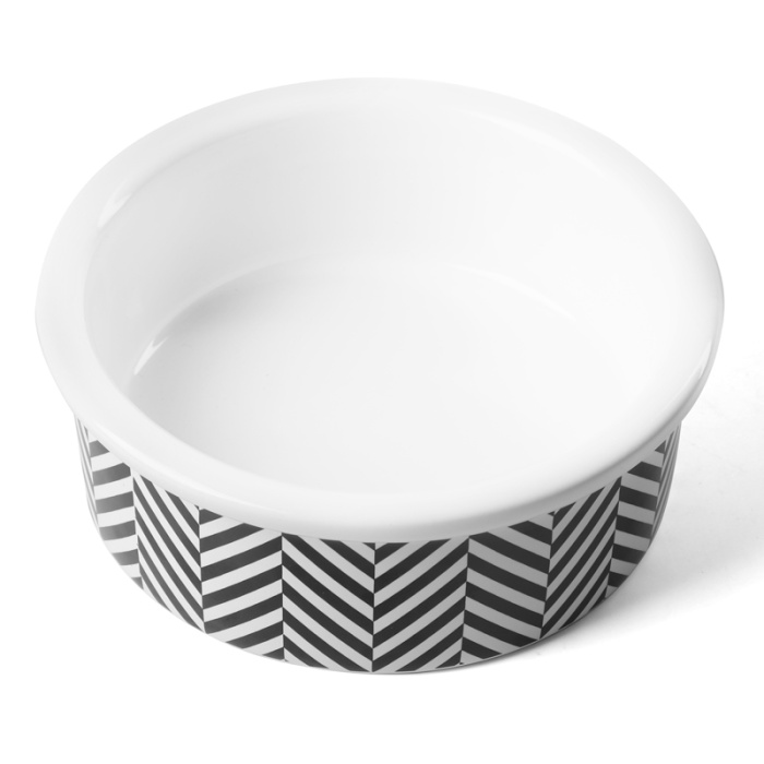 Эта стильная и функциональная миска для кошек и собак мелких пород выполнена из высококачественной керамики оригинальной расцветки. Такая миска идеально подойдет как для воды, так и для корма любой консистенции. Она комфортна для питомца и легко моется под струей проточной воды с использованием моющих бытовых средств. А выразительный дизайн позволит ей стать украшением любого интерьера. Миска идентична мискам на подставке "Сканди" (арт.30231057) и подойдет для замены одной из мисок в случае повреждения. Цвет изделия: черно-белый. Размер изделия: d дна - 112мм; d верхней части - 125мм; высота - 45мм. Объем - 0,25л.