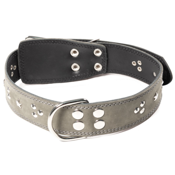 Этот ошейник - стильный кожаный аксессуар для больших собак весом от 35 кг., обхват шеи 65*70 см. Варианты пород: ротвейлер, кане корсо, немецкий дог, американский бандог (кобели), бульмастиф и т.д. Изделие выполнено из мягкой кожи в оригинальной расцветке с использованием крепкой металлической фурнитуры и аксессуаров в виде звезд. Предусмотренные отверстия позволяют удобно подгонять длину под индивидуальные параметры животного. Размеры изделия: 720мм*450мм*3мм. Цвет: болотный.