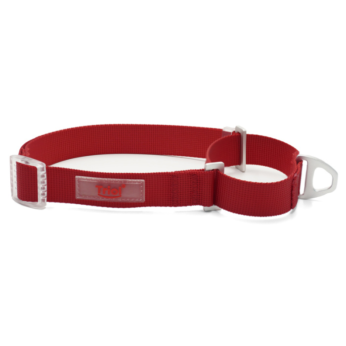 Мартингейл — нейлоновый ошейник оригинальной конструкции без застежки. Мартингейл комфортно одевается через голову питомца и не требует застегивания. При отсутсвии натяжения ошейник свободно лежит на шее собаки, когда появляется натяжение ошейник немного утягивается. При этом нагрузка равномерно распределяется по шее собаки и не утягивает питомца слишком сильно. Мартингейл подходит собакам любых возрастов и размеров. Размеры изделия регулируемой длины: 25*480-700мм (размер L). Цвет: красный.