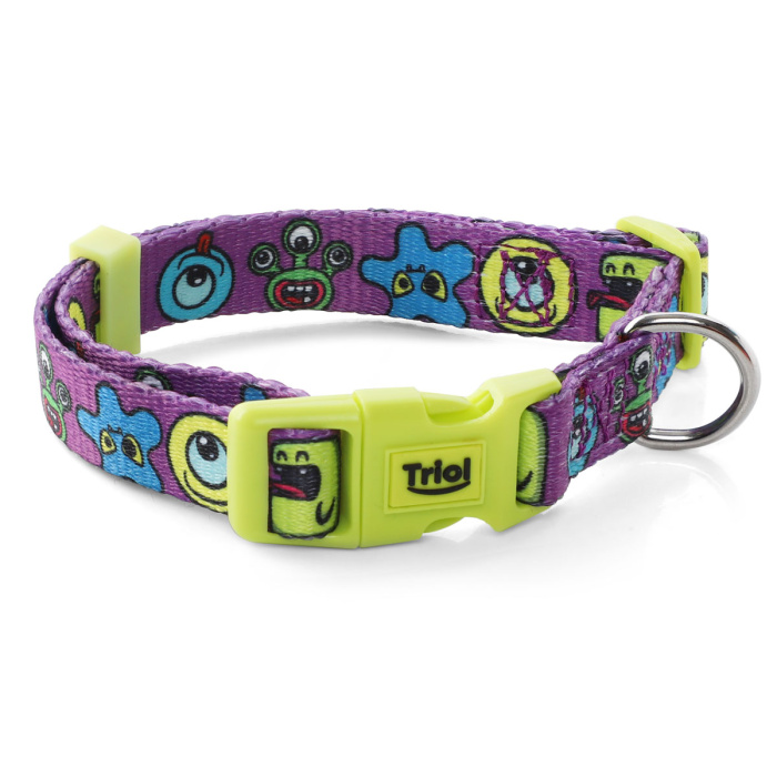 Регулируемый ошейник из нейлона — это полезный и функциональный аксессуар для четвероногих питомцев. Сбоку от застежки ошейника расположено удобное кольцо для крепления поводка. Мягкий нейлон комфортен для собак любых размеров и пород и отлично показывает себя в ежедневной носке. Размеры изделия регулируемой длины: 25*450-680мм (размер L). Цвет: фиолетово - желто - голубой.