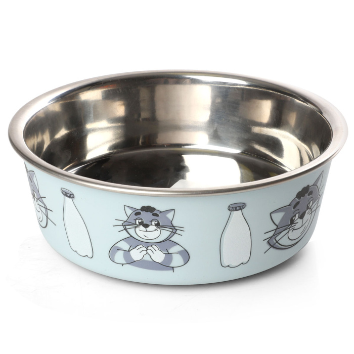 Стильная круглая миска из нержавеющей стали для кошек и собак небольших пород. Она идеально подходит как для воды, так и для корма разной консистенции. Миска комфортна для питомца и легко моется под струей проточной воды с использованием моющих бытовых средств. Во избежание повреждения покрытия изделие не рекомендуется мыть в посудомоечной машине. Прорезиненное основание обеспечивает максимальную устойчивость, препятствуя скольжению изделия во время использования, а оригинальный принт сделает такую миску украшением любого интерьера. Цвет изделия: серый. Объем: 250мл. Размер изделия: 120*120*44мм (диаметр дна - 100мм).