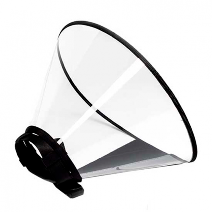 Защитный послеоперационный воротник из мягкого материала с уплотнителем хорошо держит форму и не сдавливает шею животного. Он предназначен для защиты ран от разлизывания и предупреждения отравления при обработке шерсти животного противопаразитными средствами. Высота воротника: 10 см. обхват шеи до 23 см.
